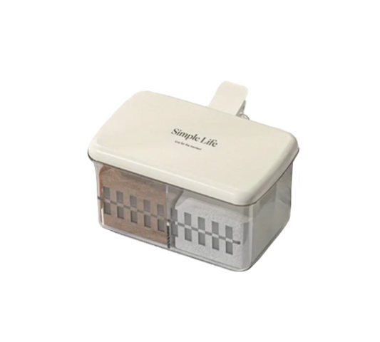 Plastic Transparent 2 Compartment Seasoning Spice Storage Container with Handle and Spoons 15 x 13.2 x 9.8 cm Assorted Colours 7618 (Parcel Rate)