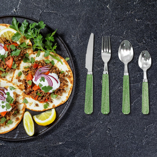 SQ Durane Metal Cutlery Set of 24 Green Glitter 10731 A (Parcel Rate)