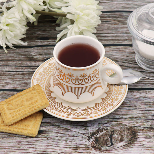 Durane Palmette Tea Set 12pc White-Gold 175ml 10526 (Parcel Plus Rate)
