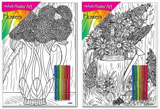 Velvet Poster Art Children's' Fun Colouring with Pens Flowers 1 25 x 38 cm 2 Designs P3022 (Parcel Rate)