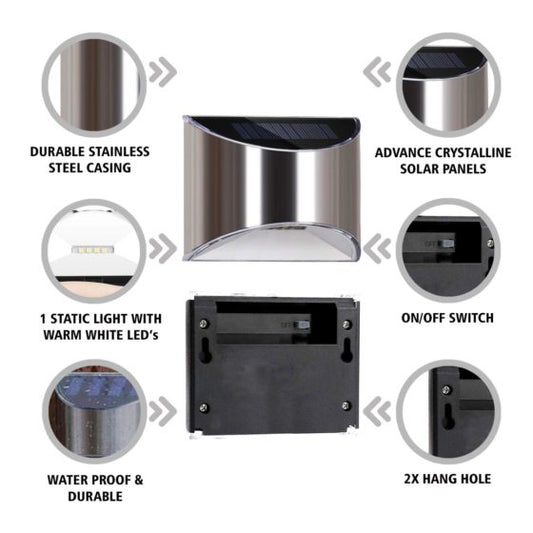 Garden Solar Powered Wall Light 2pk 10 x 8 x 5 cm 1048 (Parcel rate)
