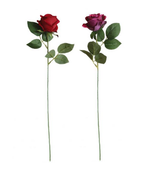 Plastic Artificial Fake Roses Flowers Single Stem Velvet Petals 50 cm Assorted Colours 7105 (Parcel Rate)