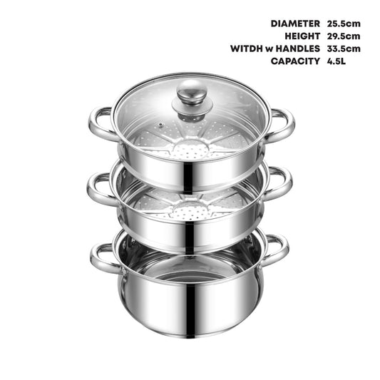 SQ Professional Lustro Stainless Steel Steamer 3 Tier 24 cm 4.5L 7494 (Big Parcel Rate)