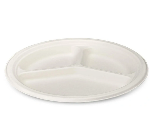 Disposable Compostable Eco-Bio Bagasse Sugarcane 3 Compartment Plates 9" Pack of 25 EC1680 (Parcel Rate)