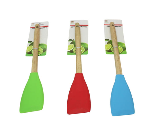 Kitchen Silicone Scraper Spatula Wooden Handle 33 cm Assorted Colours 6064 A (Large Letter Rate)