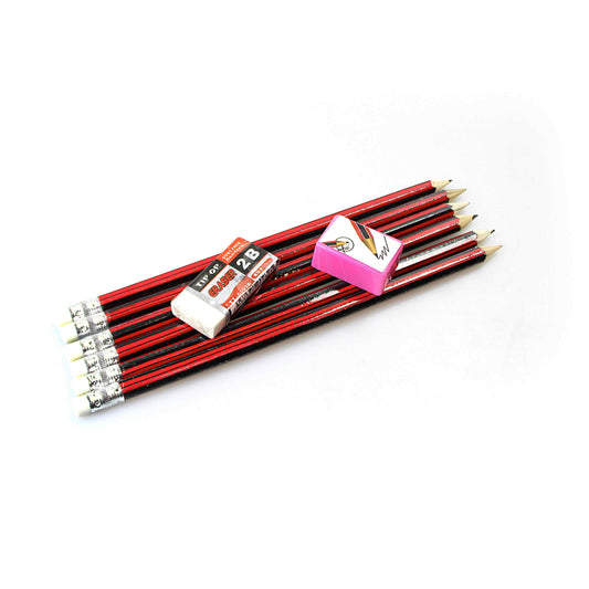 Pack of Black Lead Pencils with Eraser and Pencil Sharpener Assorted Colours 7728 (Large Letter Rate)
