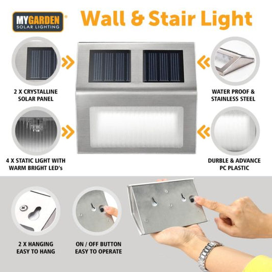 Garden Wall & Stair Light 2 Pack LED Solar Energy 1057 (Parcel Rate)