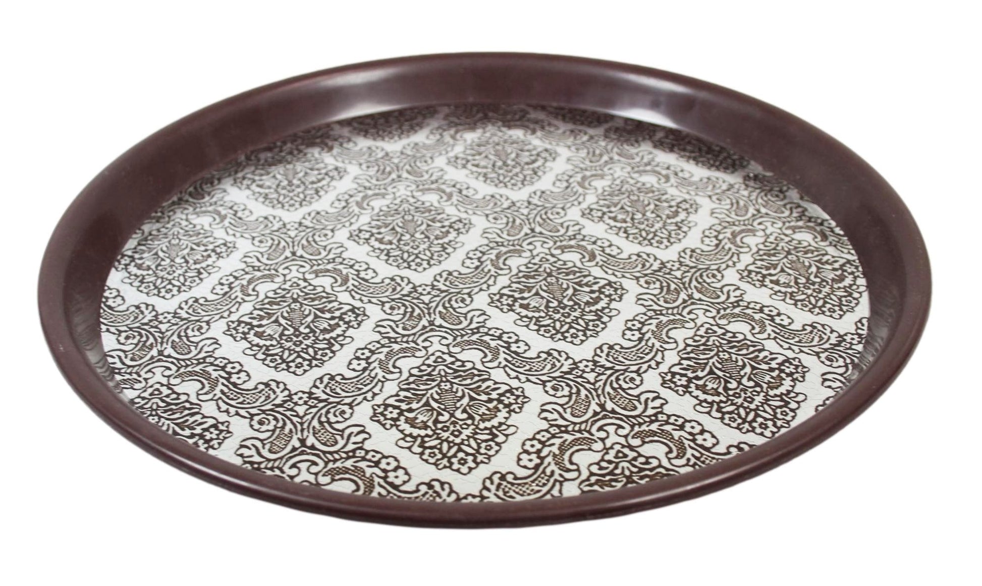 Round Plastic Drinks Bar Serving Tray with Printed Design 27 cm Assorted Colours 6047 A (Parcel Rate)